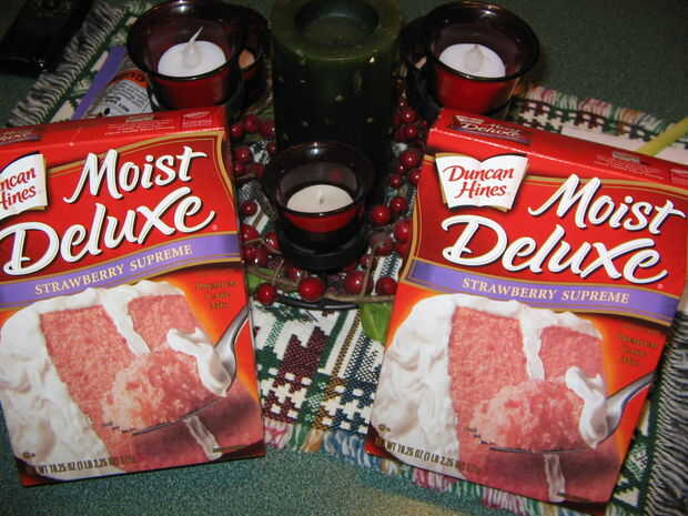 Ir a la tienda y escoger un sabor de pastel... cualquier buena voluntad hacer... literalmente cualquier tipo. Elegí hacer de fresa, mi favorito!