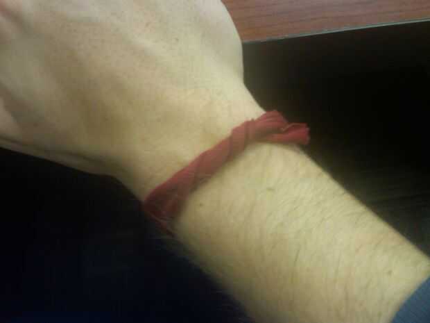 La opción más simple es Envuelva la venda alrededor de su muñeca y trenzar la cuerda debajo de sí mismo hasta que tiene las pulseras.