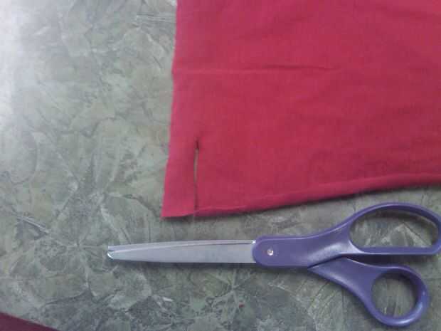 Ahora que ya tenemos una pieza plana de material, vas a querer cortar a lo largo de la parte inferior de la camiseta una franja de aproximadamente 3/4 de pulgada a una pulgada de longitud.