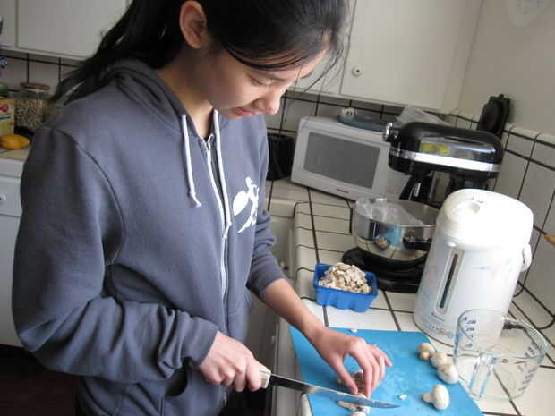 Cortar los champiñones en rodajas y añadir a la mezcla.