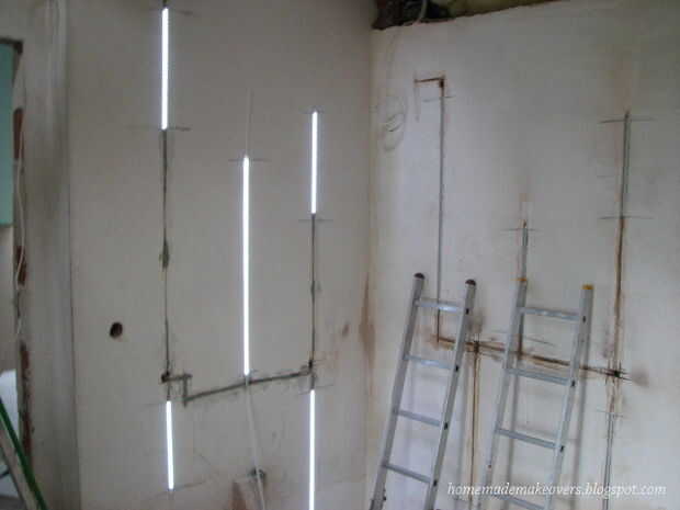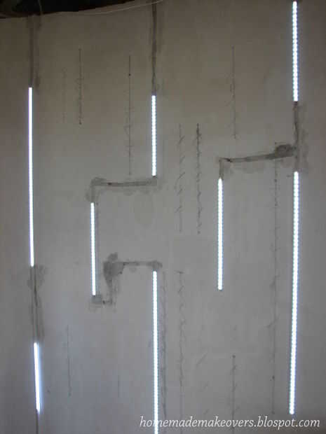 Tener su pared marcada puede iniciar planificación donde quieres que la banda para ir. Simplemente utilicé lápiz y nivel de burbuja a la mía junto con la cinta métrica para mejor precisión. No ponga las líneas demasiado cerca, porque las luces son muy brillantes cuando se enciende. Como se puede ver en la imagen he cambiado mi mente varias veces antes de las líneas en el lugar correcto. Una vez que has terminado con eso, puedes cortar los perfiles a la longitud necesaria.