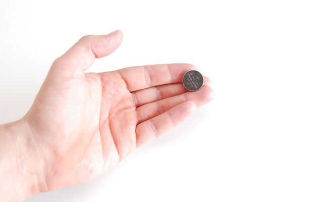 La batería en forma de disco tiene un lado positivo y un lado negativo. El lado negativo tiene menos superficie que el lado positivo. El lado positivo es más grande y tiene un (+) símbolo y los laterales de la batería.