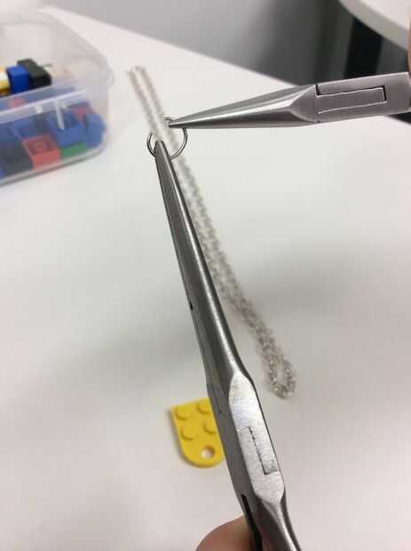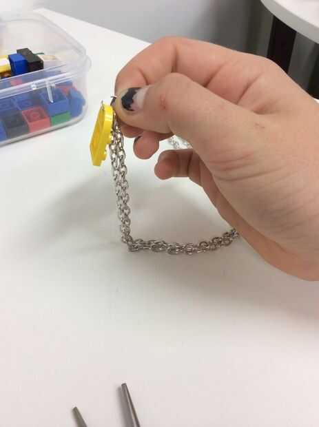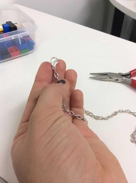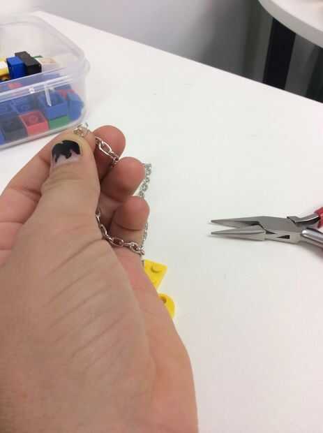 Empieza por tomar las cadenas y encontrar el débil lazo el lazo débil es un pedazo de cadena verythin utilizado para unir el collar antes de ser utilizados. Romper el lazo débil y deslice el gancho de Clip en su lugar, ahora el collar debe ser capaz de abrir y cerrar cuando desee...-siguiente ejecute su collar de fondo de mano de gancho clip hacia abajo y encontrar el lazo de cadena del centro. Una vez que esta se encuentra Coloque lego y el conector de cadena pequeña :) (ver fotos)