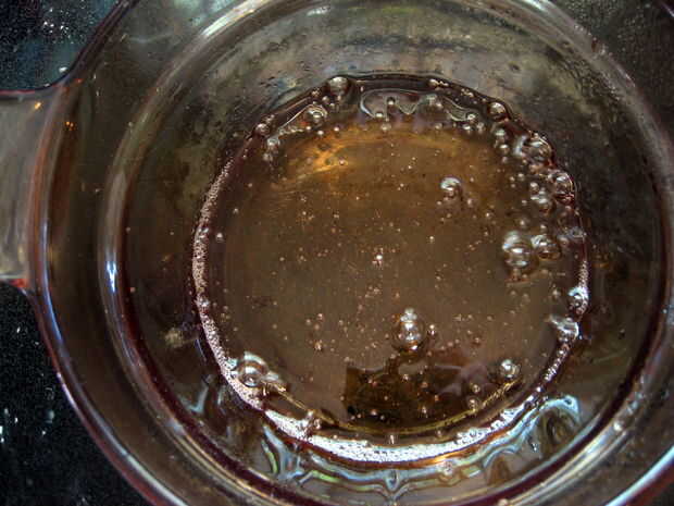 Si se agita la solución demasiado en este punto puede inducir cristalización, que va a arruinar todo el trabajo que has hecho. Sólo agitar la solución en - lentamente - con la cuchara de plástico.