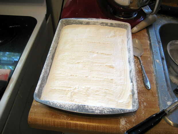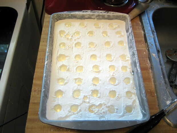 Tamizar el almidón seco reservado sobre las tapas de los moldes, asegurándose de que usted les ha cubierto completamente.