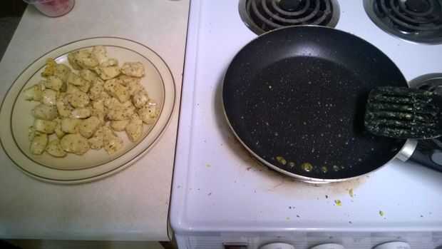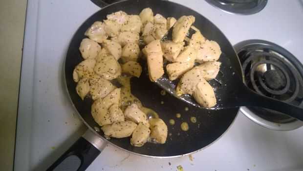 Continúe batiendo el pollo hasta que empiece a dorar un poco en algunas de las piezas. Esto asegura que el pollo es cocinado a través de todo el camino y será seguro para comer. Utilizando la espátula, sacar el pollo en un plato y disfrutar de su comida.