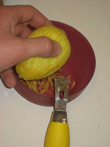 Tenga en cuenta que pequeños trozos de cáscara le dará más área superficial y por lo tanto más posibilidades para los aceites de limón disolver en el alcohol. Patata y cuchillos peladores cada uno te dará pequeñas virutas de ralladura, mientras que el zester le tiras finas y los fragmentos muy pequeños de Microplane. Me gustaría ir para el zester de limón si no tienes algo más especializados; sólo debe costó cinco dólares aproximadamente. O si quieres salpicar un poco más, conseguirá una escofina de Microplane.