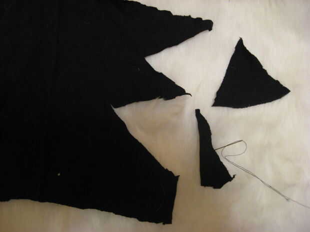 Corte 8 triángulos que forma sus patas. Estos serán las garras. Coser juntos los 2 lados más largos de los triángulos para que cada uno hace un cono. Voltear a derecha hacia fuera y esas cosas con un poco de relleno por lo que son rígidas.