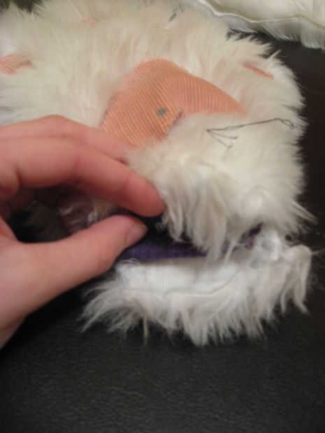 Quite los pernos y tapa lado derecho hacia fuera. Inserte un guante en cada uno y doblar las 3 pulgadas de la piel en la muñeca interior del guante y coser a los guantes, asegúrese de no coser el cierre de guantes.