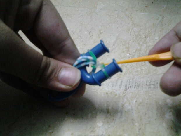 3 agregar otra banda que será una figura redonda y no en una figura 8 esta vez. Mira cuidadosamente la imagen.