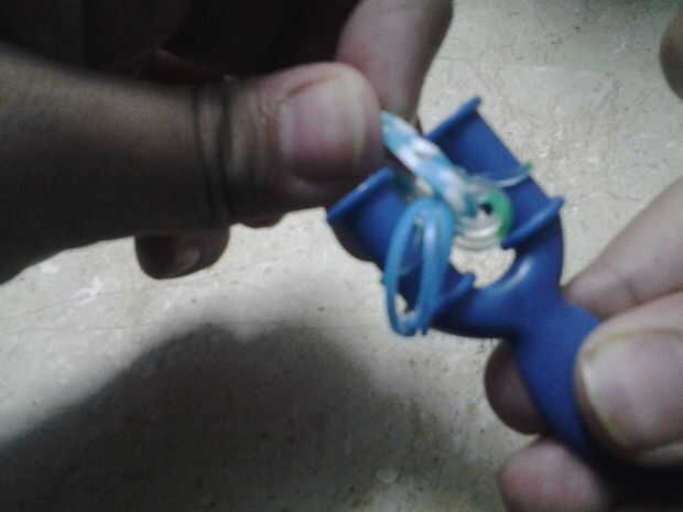 cómo hacer esta pulsera con bandas de goma.Paso 1: Cosas necesarias 1.any loom2,2 colores de su eleccióngancho de 3.aclips de s o c 4,2Paso 2: Configurar Colocar una banda de retorcidos en el extremo del telar, saltar un espacio luego pones uno del m