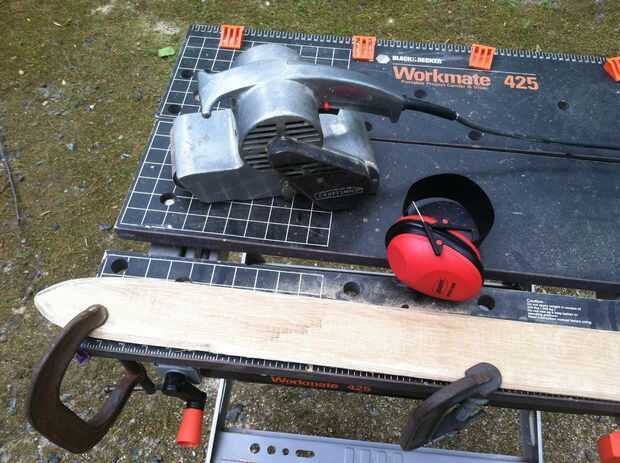 I utiliza un router para dar la cuchilla en su borde y luego lija todo con una lijadora de banda. La broca de fresadora que utilicé fue un pedacito de chaflán de 5/8". Si no tienes un router puede usar herramientas de mano en lugar de otro. Sin duda tomará más tiempo pero una buena escofina debe trabajar.