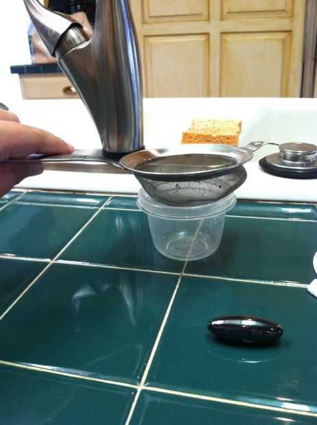 Para montar este purificador, solo pongan el filtro elegido en el recipiente y vierta en la mezcla. También, asegúrese de que los agujeros en el filtro son lo suficientemente pequeños como para bloquear la sal.