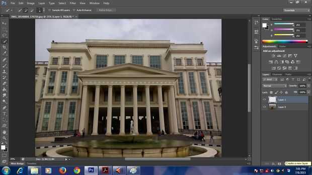 Primero de todo necesitas Adobe Photoshop. Seleccione cualquier imagen, preferiría uno nublado. Ahora abra la imagen en Adobe Photoshop, el mío es CS6. Ahora creamos una nueva capa.