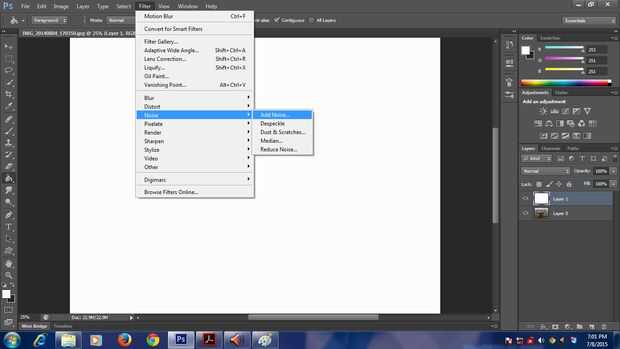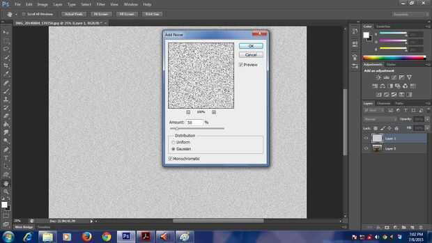 Llene la capa con la herramienta de relleno. Ahora vamos a filtro > ruido > Añadir ruido. Hacer el ajuste como en el pantallazo. Luego presione OK.