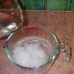 Cuando la mezcla de aceite o la cera se ha derretido, viértalo en el agua. Su loción ahora debe tener la consistencia de la leche descremada.
