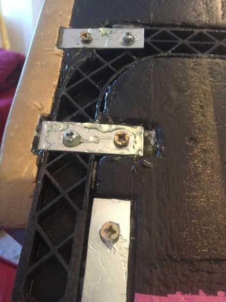 También Perfore el cuerpo a través de los soportes en L y poner algun pegamento epoxi en allí y algunos tornillos para asegurarla más.