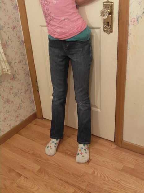 este es un proyecto muy fácil si tienes una máquina de coser costura básica.Materiales:Un par de jeans que le caben mucho antes de que estaba embarazadaUna camiseta que le cabe muy bien antes de que estuviera embarazada (tal vez incluso un tamaño dem