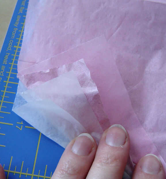 he utilizado cuatro capas de papel de tejido, dos blancos y dos de color de rosa. Usted puede tratar de más capas de tejido o diferentes combinaciones de color.