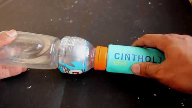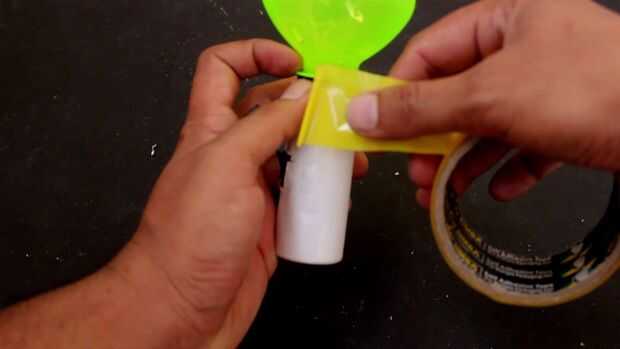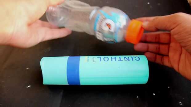 RequisitosBotella de plásticobotella de desodorantepaño de primeros auxiliosMotor de la C.C.y pistola de pegamento y un pequeño tuboPaso 1: Cortar la botella de plástico y botella de desodorante Tomar el vacío botella de plástico y cortar en mitad y