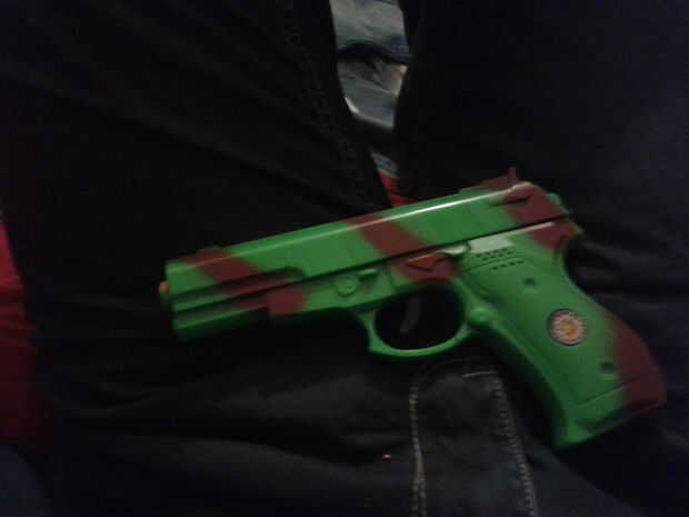 Coloque la pistola sobre algo plano, agarrándolo verticalmente con respecto al igual que el mío es.