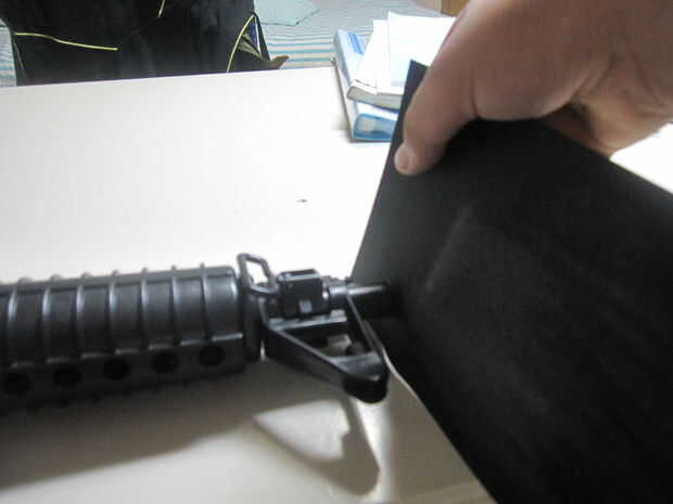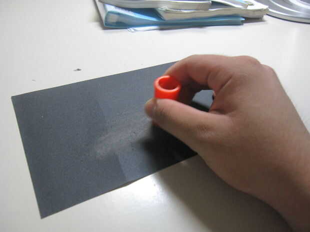 Ahora con papel de lija suavizar la parte aserrada de flash hider y la pistola.
