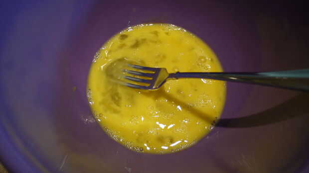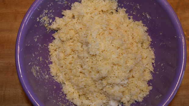 Romper los huevos en un tazón y bata hasta que bien golpeado. Agregue el azúcar, la sal y la vainilla. Después se combinan completamente, añada el coco. Asegúrese de que todos los del coco se humedece.