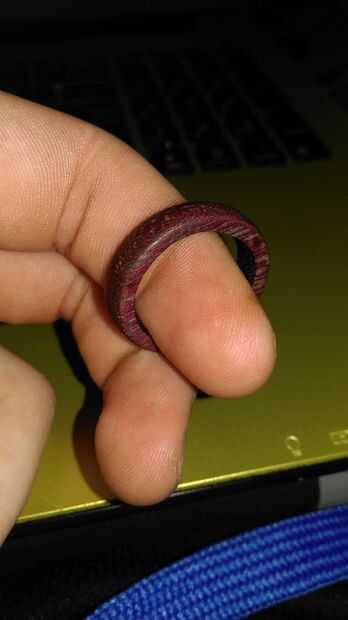 Ahora te mostraré cómo hacer un anillo de madera de una pieza sólida de madera. Esto requiere un torno, experto habilidades de carpintería o joyería o herramientas costosas. El anillo de aquí está hecho de corazón púrpura.