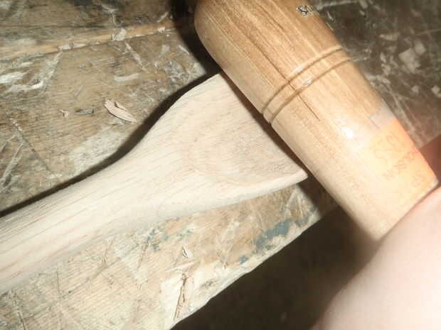 Puede utilizar un martillo o un cincel de madera martillo o simplemente empujar con la mano.