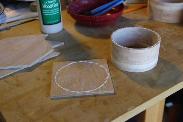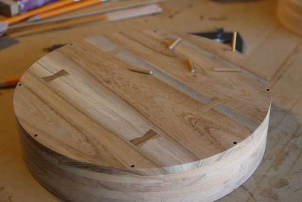 Opcionalmente, si usted la taza llanta es de 1/4" o más grueso, puede reforzar la fijación de la parte inferior con 1/8 espigas insertadas en la parte inferior. Esto añade un toque agradable pero no es necesario. Ver fotos para detalles.