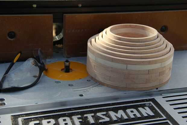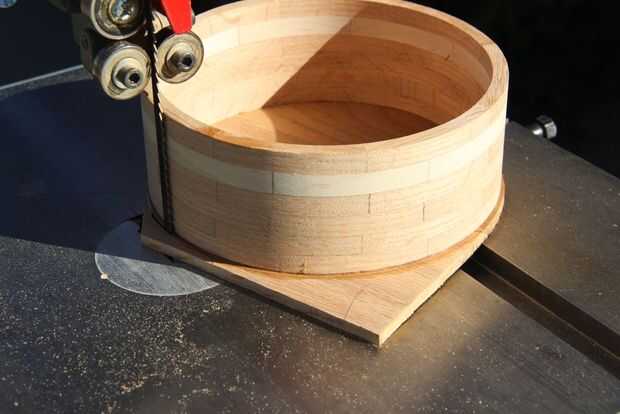 Recortar el exceso fuera en su sierra de cinta cortar tan cerca como usted puede, pero no corta o marr su lado del tazón de fuente, luego use su router o mesa de fresadora a ras-recorte la parte inferior exterior con un poco de ajuste.