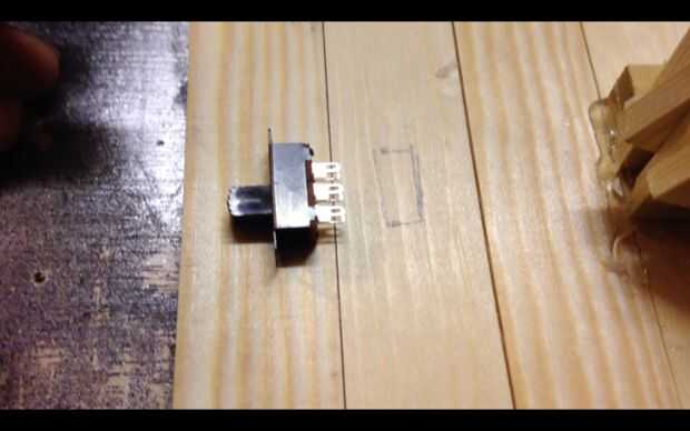 A continuación, marcar donde quieres el interruptor con el lápiz. Taladre dos agujeros de suficiente espacio para el interruptor para impulsar y ampliar el agujero usando un pequeño archivo para hacer el interruptor encaja perfectamente.
