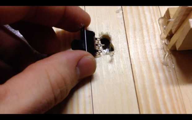 Añadir un poco de pegamento caliente para fijar el interruptor en su lugar.