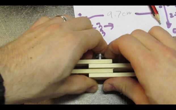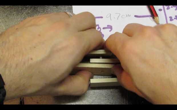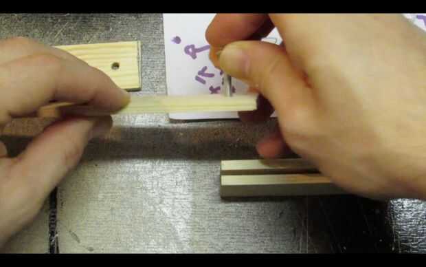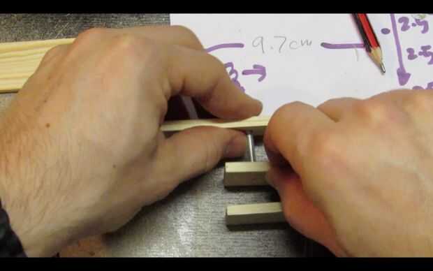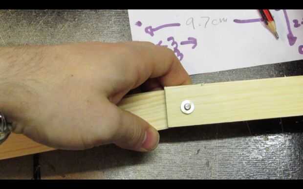 Enrosque una arandela de otro perno y colócala en los orificios de la madera en este orden: