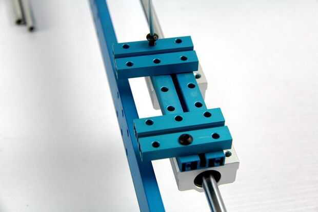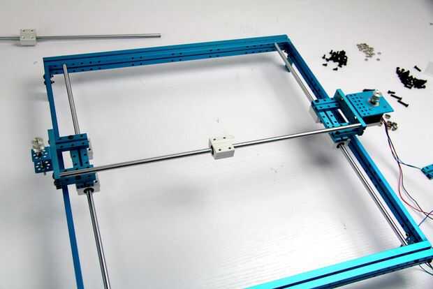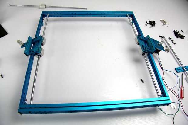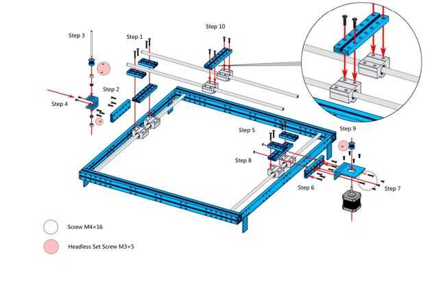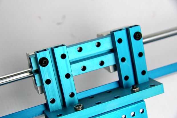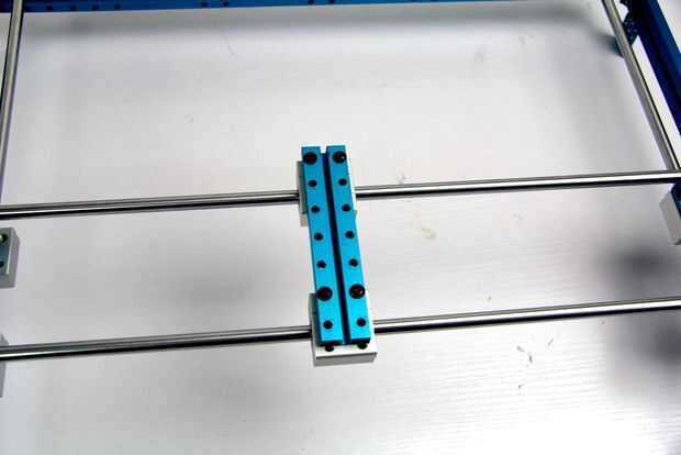 10. Coloque la unidad de deslizamiento en el eje y fije el eje eje x en las plataformas.