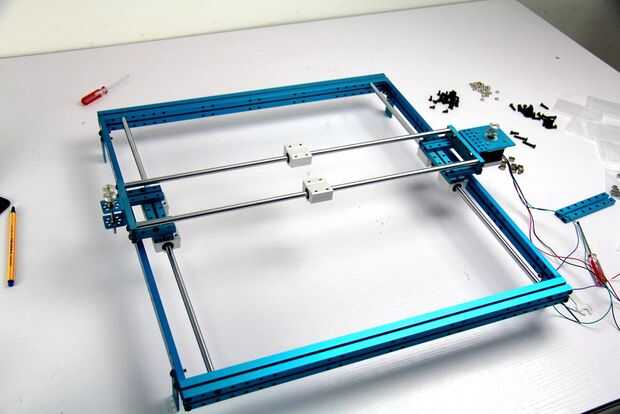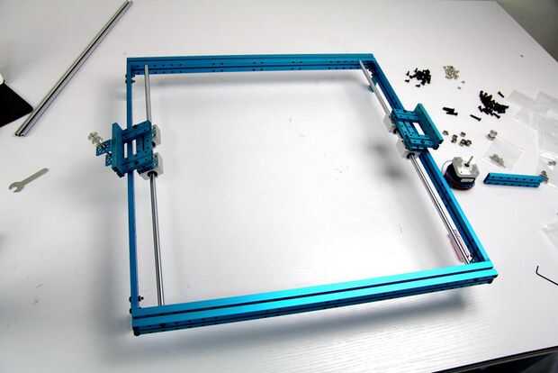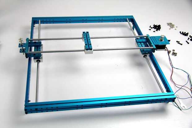 1 y 2. Construir la plataforma izquierda. Las dos plataformas se utilizan para conectar el eje x y eje y. Todo lo que necesitas son Beam0824 48, 128, 144 y algunos tornillos y tuercas.