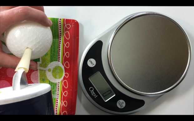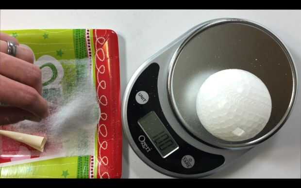 Usando el embudo transfiera sal en la bola (Coloque la placa de papel debajo para atrapar la sal extra). Que tenga que llenar el embudo con la sal, esperar a que drene en la bola, luego repita el proceso. Una vez que todo el peso que se siente adecuado para usted, coloque en la balanza para ver qué tan cerca estás. Hago mis bolas 100 gramos, pero puede llenarlos como pesados o ligeros como usted necesita. Agregar o vaciar la sal si es necesario.