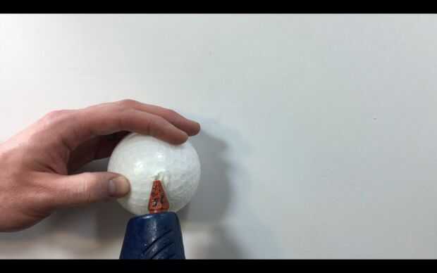 Una vez haya rellenado la bola a su peso deseado, coloque la corte anterior atrás en lugar de plástico. Si no cortan la pieza hacia fuera de una vez la pieza, siempre se puede cortar un nuevo pedazo de otra bola. Tomar el arma de pegamento previamente calentadas y descansar la punta metálica encima de la costura y gradualmente derretirse el plástico juntos. Añadir más piezas de plástico según sea necesario.