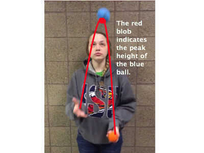 3. Cuando la bola uno alcanza su máxima altura, bola de tiro dos con mano dos usando el mismo método que antes.