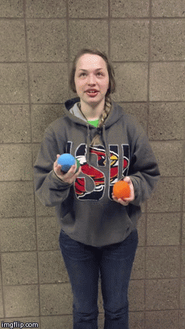 • No importa que mano tiene bola uno y bola de tres. Escoge la mano que se siente más cómoda. Nota: se trata de la mano que tira primero! En el gif de arriba, la parte uno es la mano derecha.