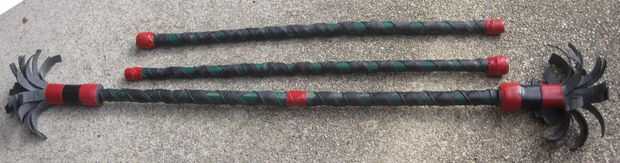 También puede poner una pequeña banda de goma (o una sección transversal de un neumático pequeño) alrededor de cada extremo de la vara de lanzamiento. Así, cuando no estás jugando, usted puede mantener todos los tres palillos firmemente juntos en un solo lugar.