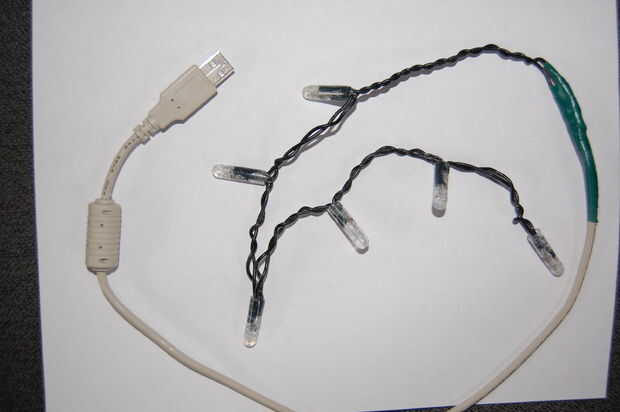 tomé esta batería LED luces de cadena funcionado quitó el paquete de baterías 3 AA y conexión usb