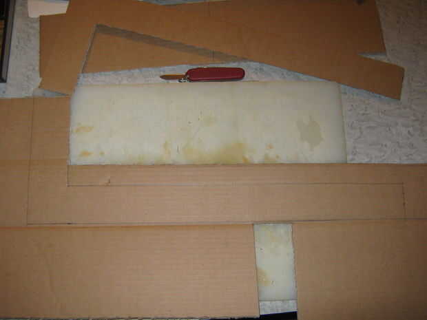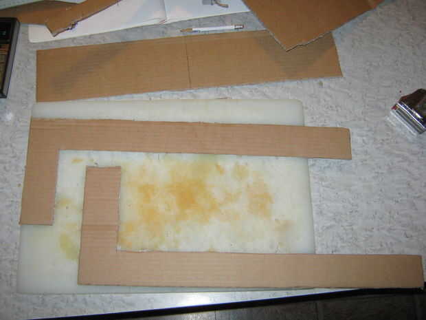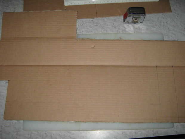 Si va a crear con cartulina, luego deberás hacer dos de los buques de la misma y pegar junto con pequeños hilos de pegamento en el mismo patrón como se muestra en la foto 6, en orden para la suficiente fuerza, sin demasiado peso adicional. Lo mismo se aplica para espuma de poliestireno del mismo espesor, a menos que tenga 1/4 de pulgada gruesa espuma de poliestireno.
