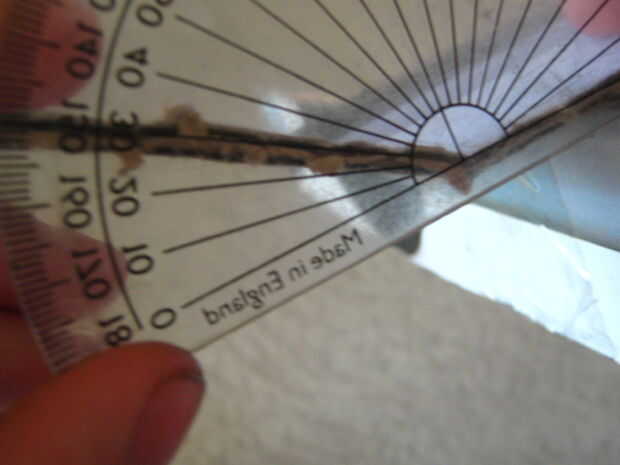 Si la envergadura es menor de 20 pulgadas: mantener sólo un lado del ala para que el transportador lee el ángulo que usted calcula, porque el peso del ala no debe ser lo suficientemente significativo como para aplastar el pegamento.