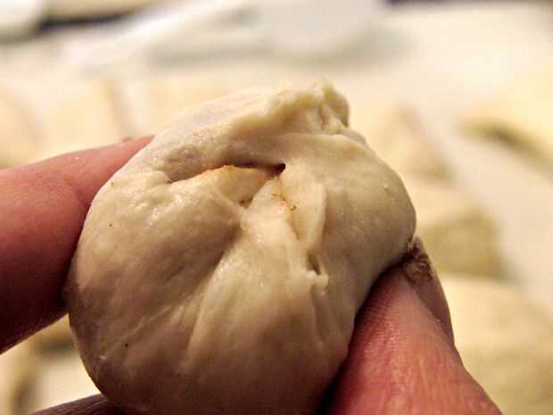 - Tome un pedazo de masa y utilice sus dedos para aplanar.