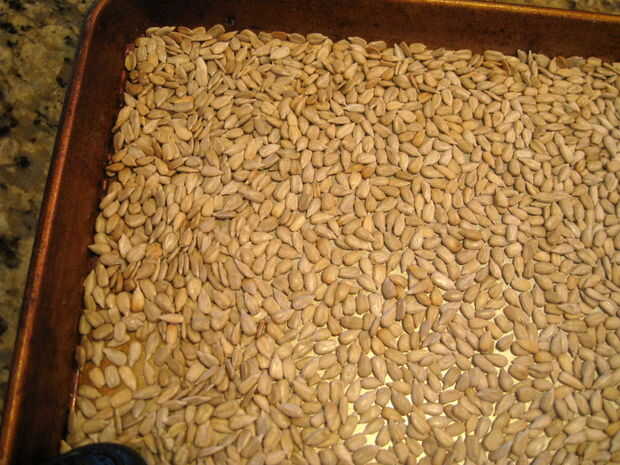 Asar por 4 minutos. Rotar las bandejas y tirar las semillas. Vuelva a colocar en el horno y asar durante otros 4 minutos.