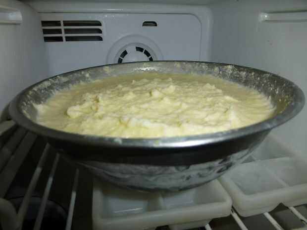 • Recoger el crema todos los días en el mismo recipiente y guárdelo en el congelador. Como se puede ver en las fotos de arriba, el recipiente está lleno de crema después de diez días. Que permanecer en el congelador hasta que esté listo para extraer la mantequilla.
