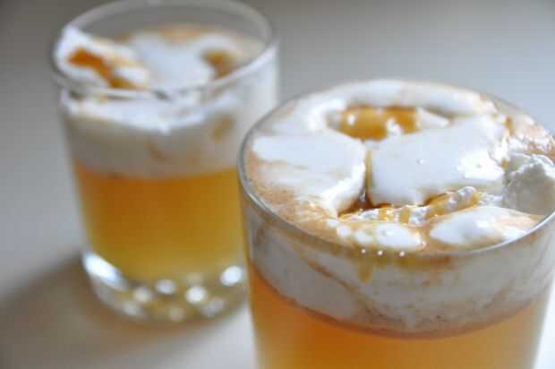 - Vierte en un vaso y decorar con una cucharada de crema batida y un chorrito de caramelo. Servir tibio.