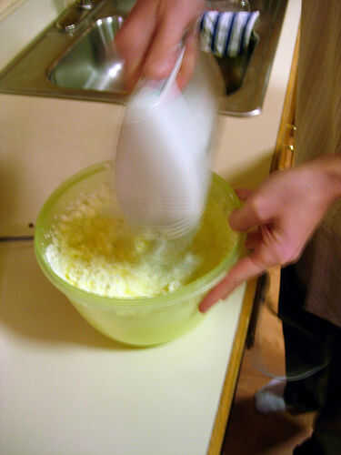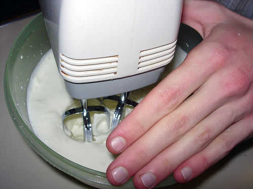 Naturalmente, será el primer paso en su proceso de crema batida. Tener paciencia, como los glóbulos de grasa continúan romperse aparte, obtener crema batida más rígido y aún más, hasta que de repente, los pequeños terrones de mantequilla empiezan a chapotear alrededor en el suero de leche. Otra vez, esto sucede absolutamente repentinamente, pero sabrás cuando veas, incluso si no has hecho esto antes, es un cambio rápido, cualitativo, no así entre crema y crema batida ligeramente más rígida. Vas de tener crema batida muy dura y ligeramente sloshy tener quebradas-para arriba muy mantequilla y suero de leche muy sloshy en cuestión de segundos.
