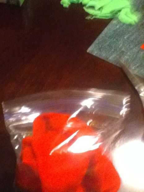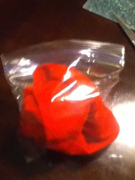 Papel tela roja cuadrada en una bola y poner en una bolsa de sándwich.